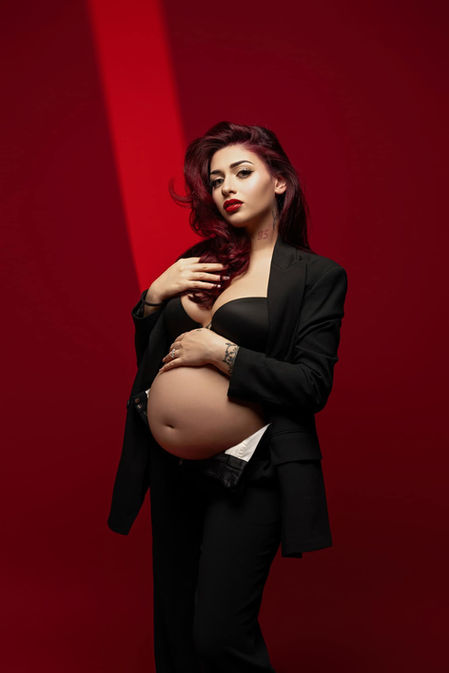 Our sessions are thoughtfully curated to celebrate your pregnancy with elegance, confidence, and intention. From professional styling and couture maternity gowns to artistic lighting and gentle posing guidance, every detail is handled with care — so you can simply enjoy the experience.